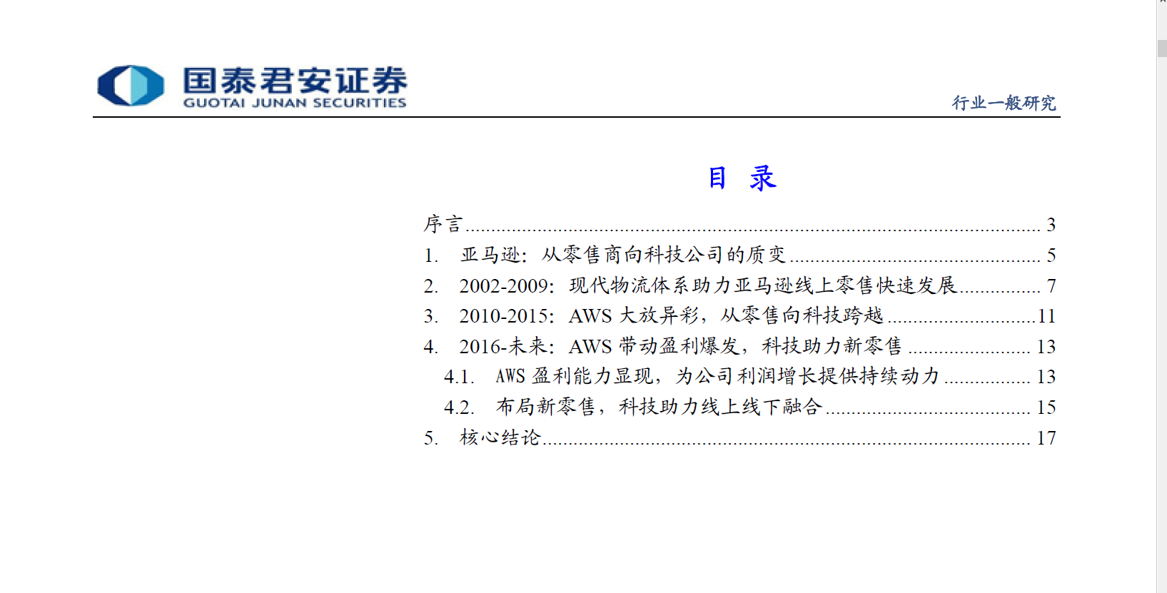 批发零售行业亚马逊专题研究:看亚马逊由电商向科技公司的质变-国泰君安-18页
