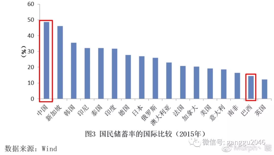 中国高储蓄率的原因有很多,除了民族特点之外,就是众所周知的福利水平较低了。如上图,由于福利水平较低,所以我国的居民储蓄与政府储蓄均远远高于美国。说到福利,看到第一张图的朋友们不知道会不会想到巴西这个国家呢?
