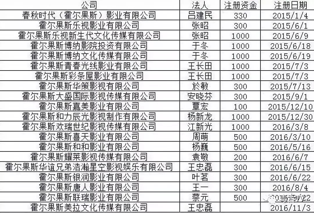 除了明星,国内主流的电影公司超过一大半也已经在霍尔果斯注册了公司,比如,光线、华谊、博纳、乐视、嘉映、华策、欢瑞世纪、耀莱、和力辰光、大盛国际、喜天、和和、银润、联瑞……总数超过600多家。