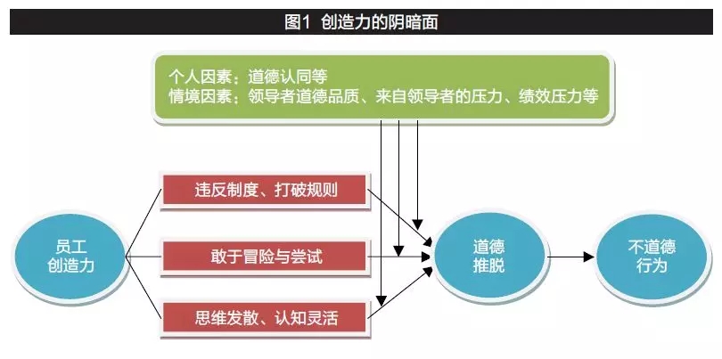 综上,创造力与不道德行为本质上都基于相同的逻辑:打破规则、敢于冒险、思维发散和认知灵活的意愿或能力。这些表现容易使员工跨越道德的边界,产生道德推脱,即找到说服自己和他人的、有新意的、降低或转移责任的解释等,最终导致更多的不道德行为。