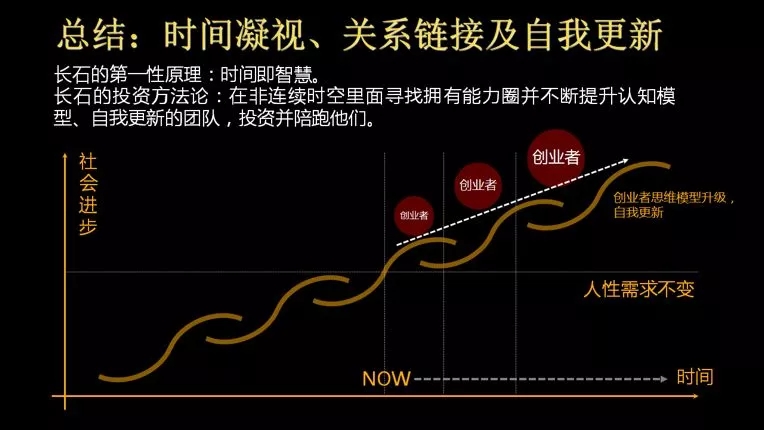 时间是非常宝贵的,时间的等式就是:时间=智慧。苏格拉底说过:智慧即美德。敬畏时间的变化是智慧的,也是美德,我们需要不断地更新自己。在时间的维度里,你要找到一个好的创业的机会。