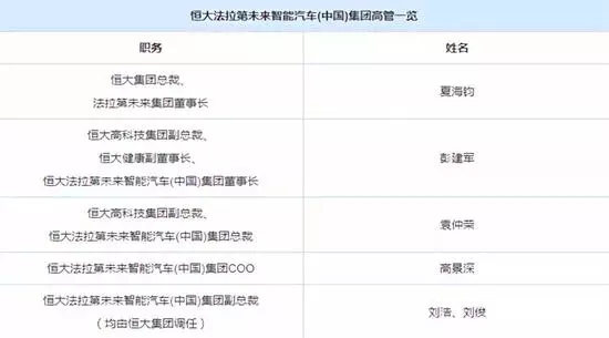 美国当地时间7月13日,恒大董事局主席许家印亲自赴美到FF总部进行视察时,消息显示,恒大集团总裁夏海钧兼任FF董事长、贾跃亭则任FF全球CEO。