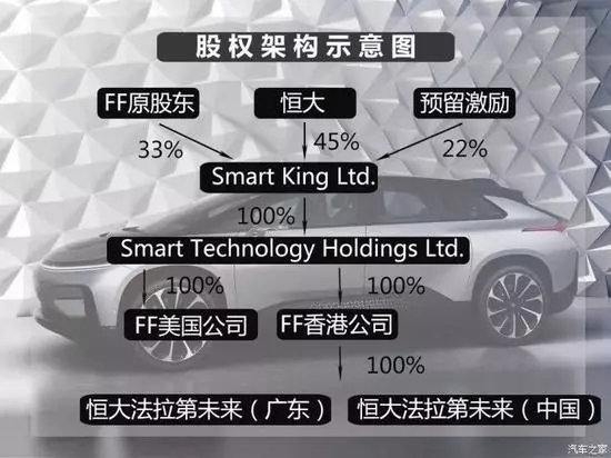 6月25日,恒大以67.46亿港元(约8.5988亿美元)收购香港时颖公司100%股份,间接获得Smart King公司(全资持有FF香港与FF美国)45%的股权。换算后可以发现,FF继续成长了近半年后,恒大仅用6000万美元的溢价就将FF全盘接下。