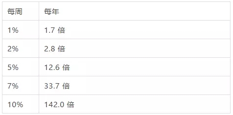 如果每周的增长率是 1%,一年是 1.7 倍;
