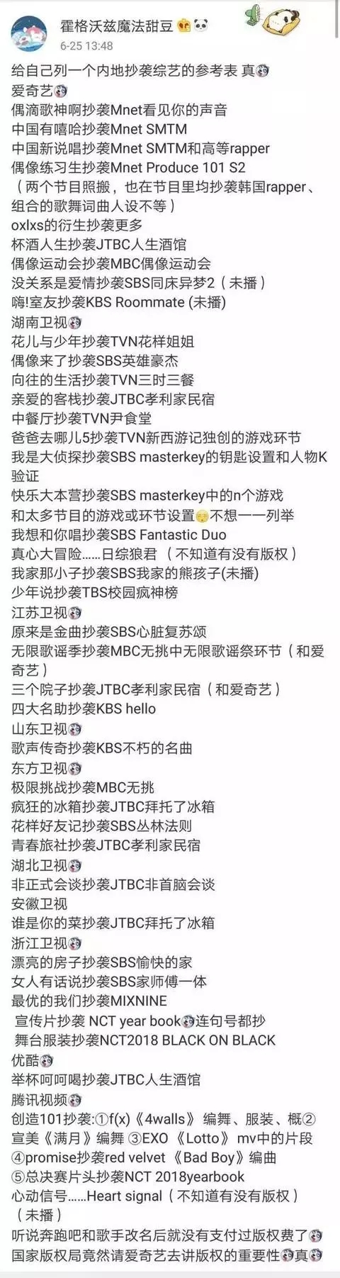 其实不用韩国官方统计,我们的综艺节目抄袭问题早已被自己网友扒得体无完肤,来看一个网友的总结:
