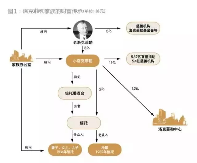 而当今洛克菲勒家族的财产传承模式大部分得益于家族的第二代小洛克菲勒的决策。作为父亲的独生子,他继承了老洛克菲勒的全部家产,并在自己的年代努力的为自己的家族正名:一方面,他用信托方式来传承财产;