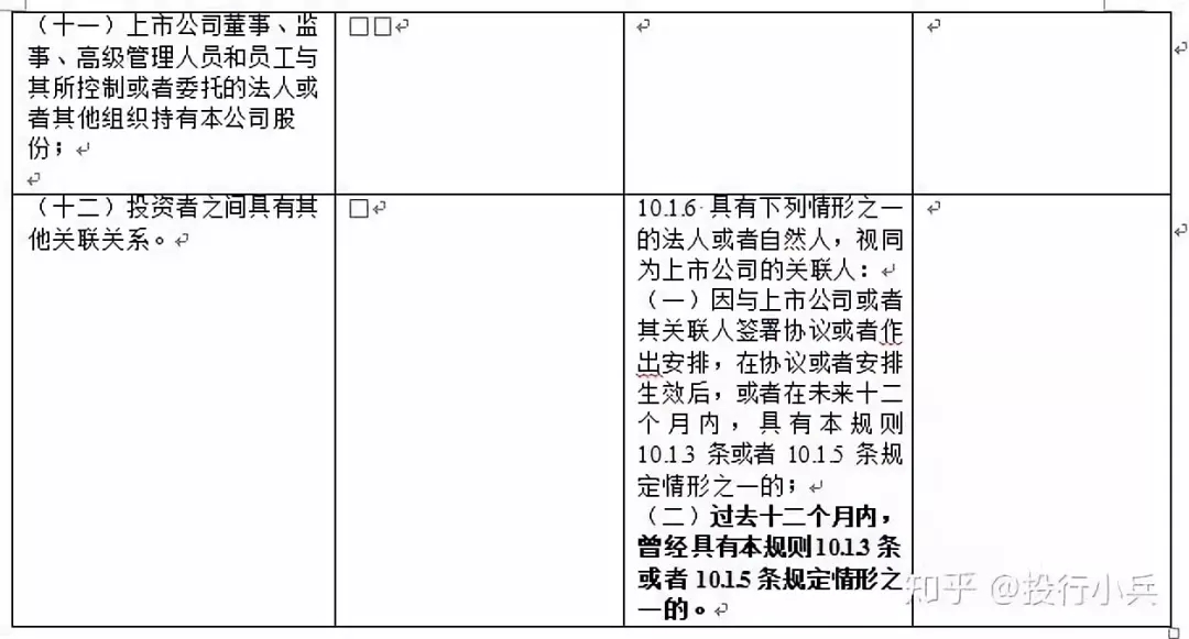 (三)投资者的董事、监事或者高级管理人员中的主要成员,同时在另一个投资者担任董事、监事或者高级管理人员; | | (三)由本规则10.1.5条所列上市公司的关联自然人直接或者间接控制的,或者担任董事、高级管理人员的,除上市公司及其控股子公司以外的法人或者其他组织; | (二)上市公司董事、监事及高级管理人员; |