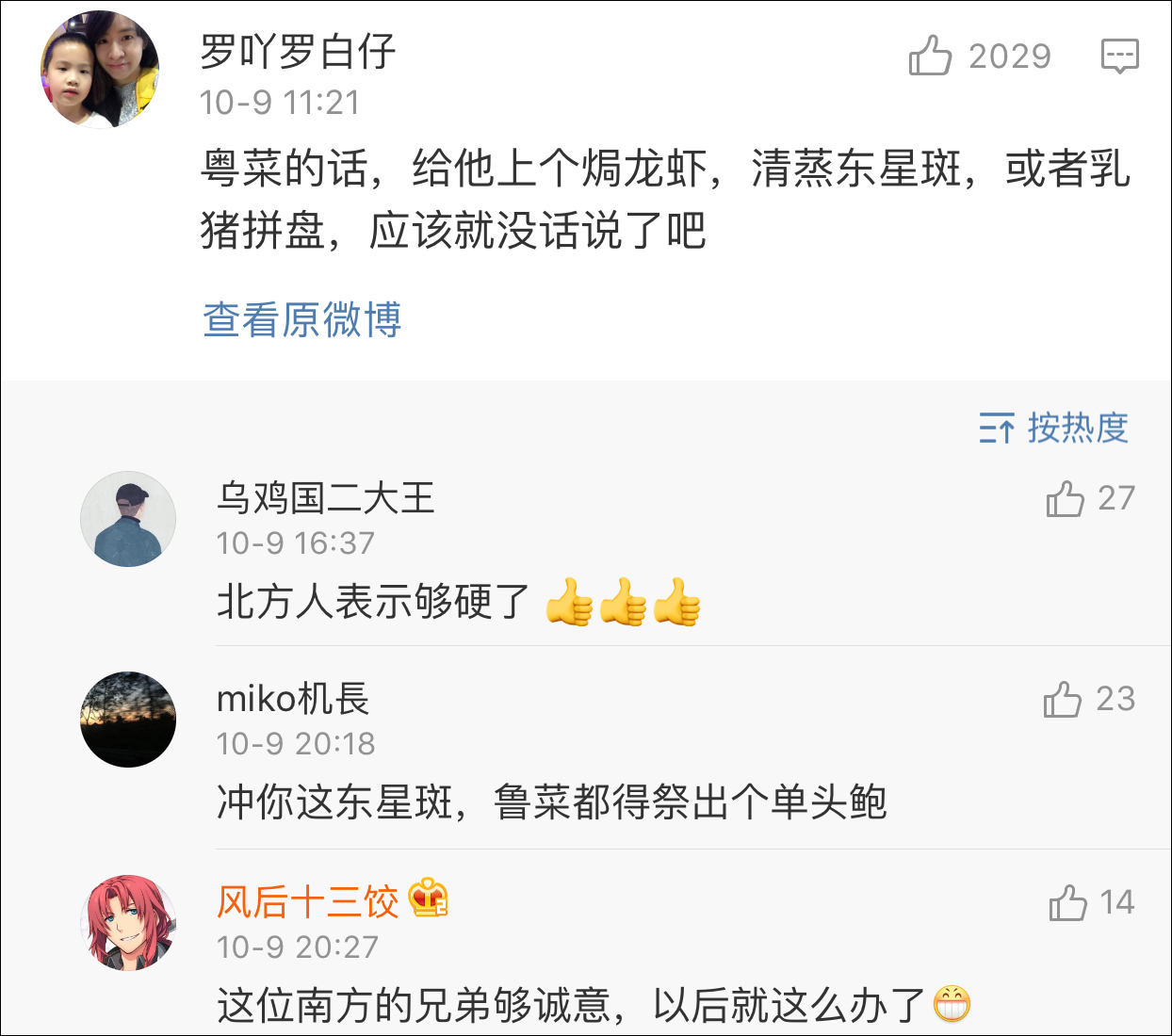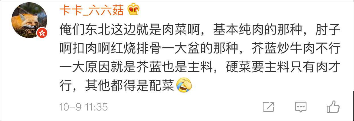 最近,微博博主@我是肥志 的一条微博引起了南方人的注意,什么?你们北方人吃饭一定要有一道硬菜?