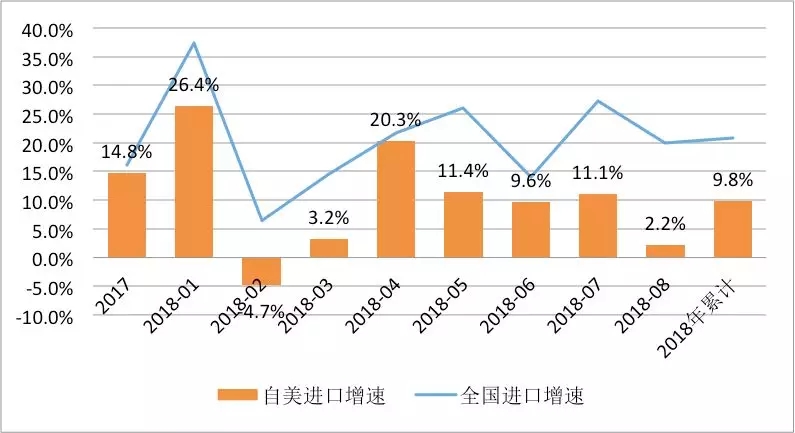 全国进口和自美进口增速(单位:%)