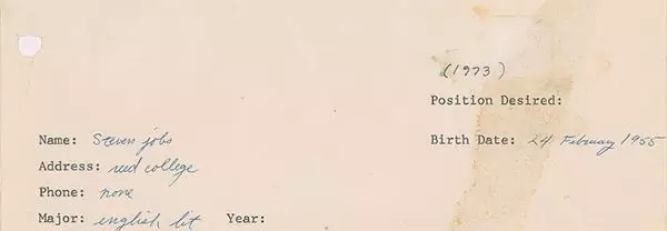 他填的地址是里德学院(Reed College),专业是英国文学(English Lit)。
