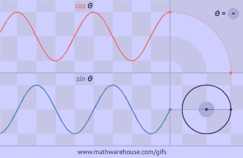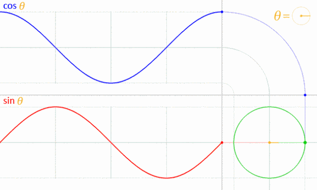 正弦函数和余弦函数的波浪形是怎么回事呢?原来可以看成一点在圆上运动在坐标轴上的投影啊!