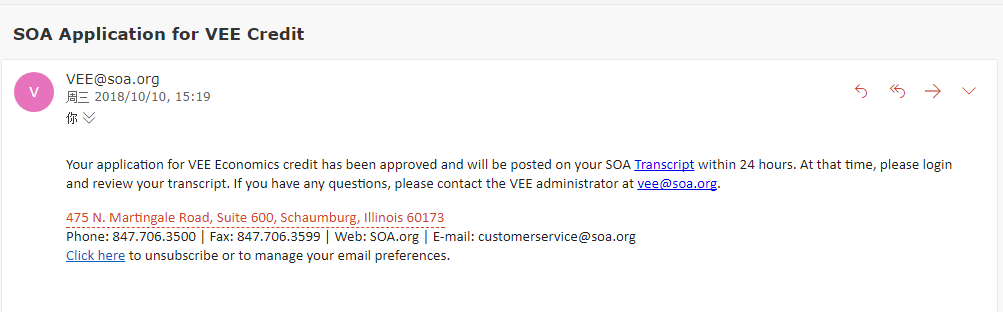协会会回复你说电子成绩单(transcript)已经寄给了soa