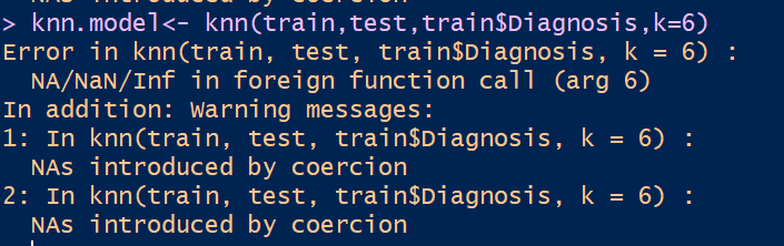 knn.model<- knn(train,test,train$Diagnosis,k=6)
