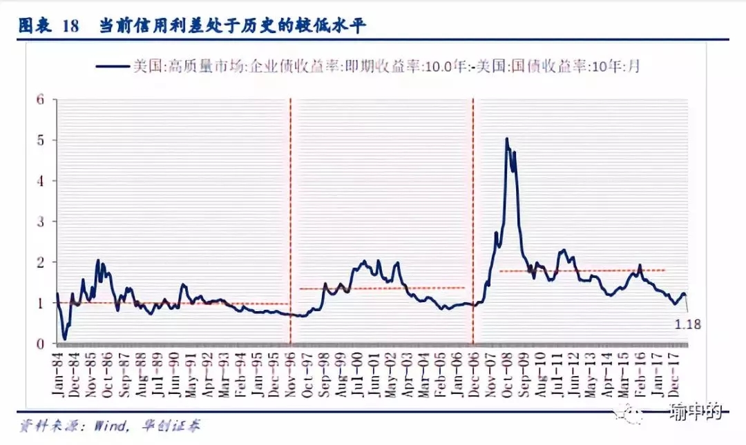 美债信用定价与风险不匹配:目前信用定价基本是历史低位,虽然全球资质变差其实信用定价也是逐步上台阶的。但是在目前这个资质下的定价(目前信用利差约为1.2%),基本是过去的低位水平(1984-1996年这一阶段信用利差均值为1%,1997-2006年这一阶段均值为1.24%,2007至今均值为1.8%)。