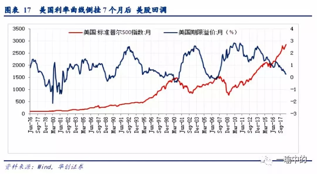 从历史规律来看,美国利率曲线倒挂是经济和金融市场的前瞻指标,一般美国利率曲线出现倒挂后货币政策、股票市场和经济随之会出现拐点,我们把这种现象称为美国利率曲线的诅咒。美国利率曲线倒挂诅咒分为三步,在这三步曲中我们分别会看到货币政策转向,美股调整和经济衰退。从发生的时间来看顺序是:利率曲线倒挂→美联储停止加息(滞后4.3个月)→美股拐点(滞后7个月)→经济衰退(滞后13.2个月)。