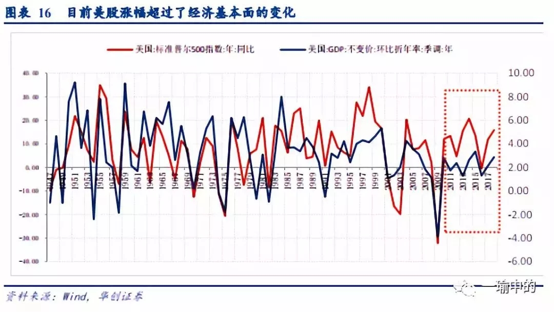 美股涨幅远高于经济基本面变化,美债利率曲线平坦化对美股形成调整压力:宏观经济和企业盈利是影响股市的核心因素,美国的股市自1951年至2006年可以较好地能反映经济基本面的变化,但近十年美股的涨幅已经远远高于GDP增速(1951-2006年GDP平均增速为7.47%,标普涨幅为8.79%, 两者仅相差1.33%。 而2008-2018年年间,GDP平均增速为3.41%,标普涨幅为6.98%,标普涨幅明显高于GDP增速)。由于美股涨幅远高于其经济基本面变化,因此美股积攒了一定的调整压力,利率曲线倒挂是美股调整的前瞻指标(利率曲线倒挂成功预测了美国2000年和2007年的股灾,在利率曲线倒挂平均7个月后,美股出现拐点),当下美国的十年期和两年期的期限利差已达到金融危机以来低点。