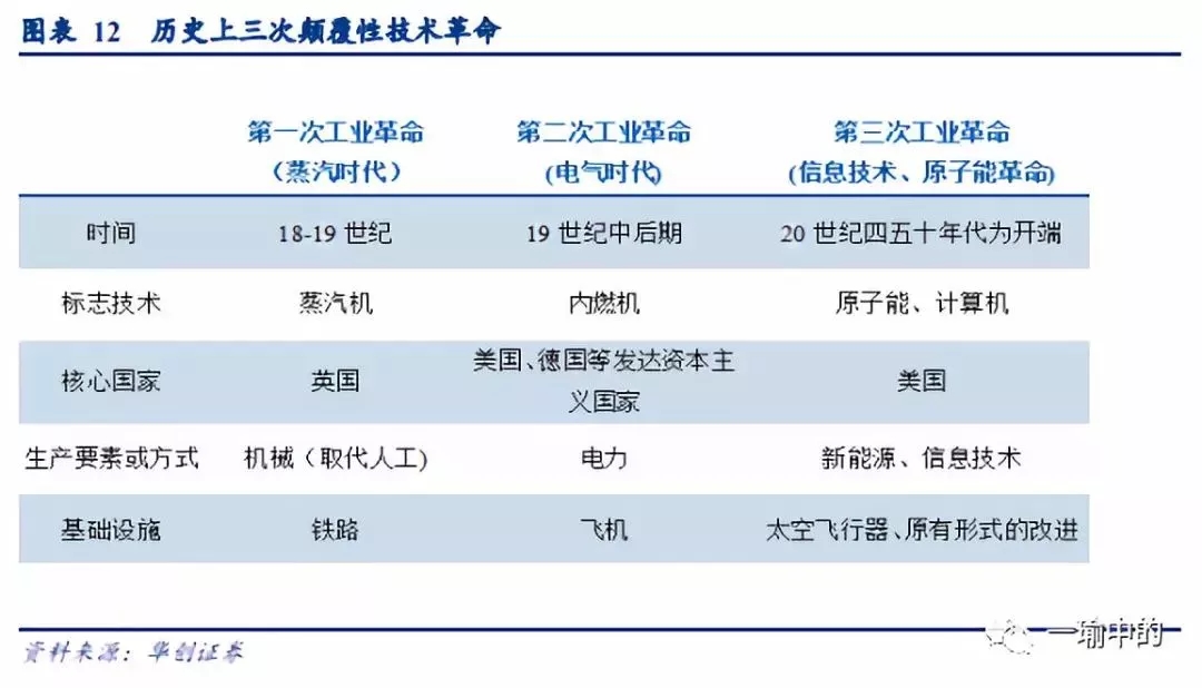 新一轮技术革命也并未看到:全球重大颠覆式技术革命能够刺激长期的经济增长,但目前来看我们并没有看到颠覆式可以改变基础能源(例如:历史上的木材、煤炭、石油和太阳能)的技术革命;或是颠覆式可以改变基础运输效率(例如:历史上的蒸汽机、内燃机、火车、飞机、运输式太空飞船) 的技术革命;或是颠覆式可以改变生产模式(例如:人力密集、资本密集、技术密集3D打印 区块链) 的技术革命。目前整体还是大的信息技术革命中的小的范式革新。