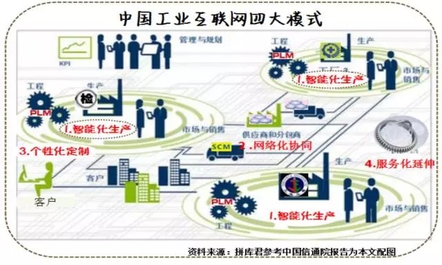 (1)工业+互联网:基本上是在现有的产品设计、制造、销售、运行、维护业务中引入数据化、互联网、软件分析,尽可能优化过程,产生新的经济效益,中国很多自称工业互联网的项目大多属于这一类。