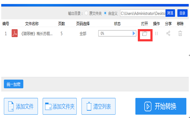5.输入密码后,点击确定,然后点击右下方的开始转换。