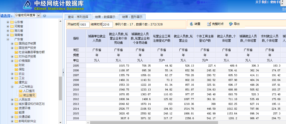 广东省就业情况1993-2016年