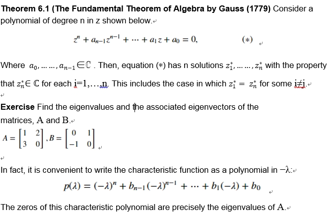 Theorem 6.1 (The Fundamental Theoremof Algebra by Gauss (1779) Consider a polynomial of degree n in z shownbelow.