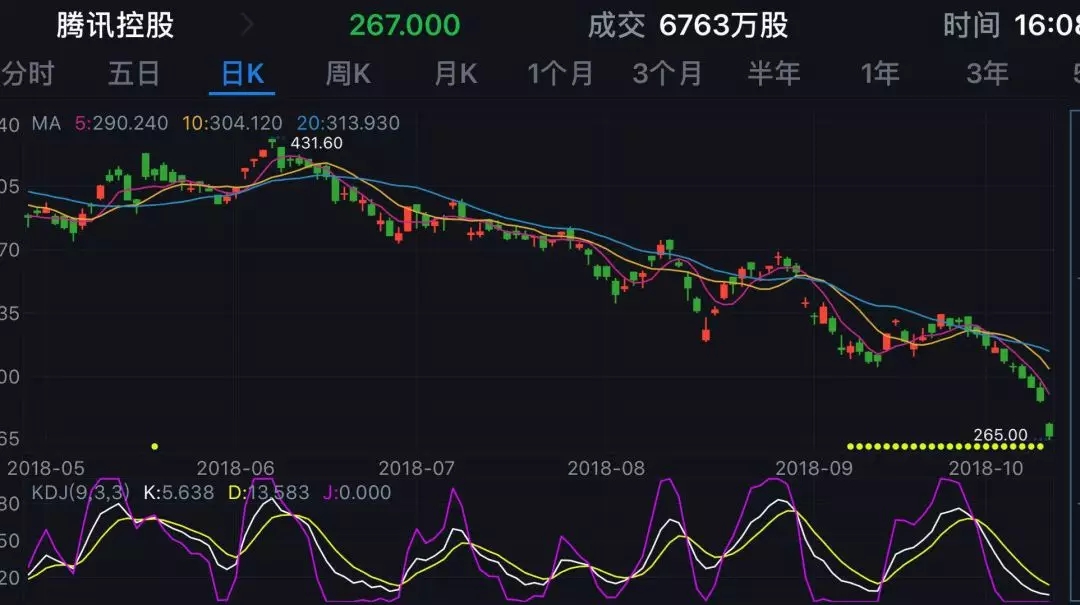 截至收盘,腾讯报收267港元,大跌6.77%,再创调整新低。值得一提的是,腾讯控股最新股价与近一年的高点相比已经跌去近40%。创出了该股自2004年上市以来的最大跌幅记录。