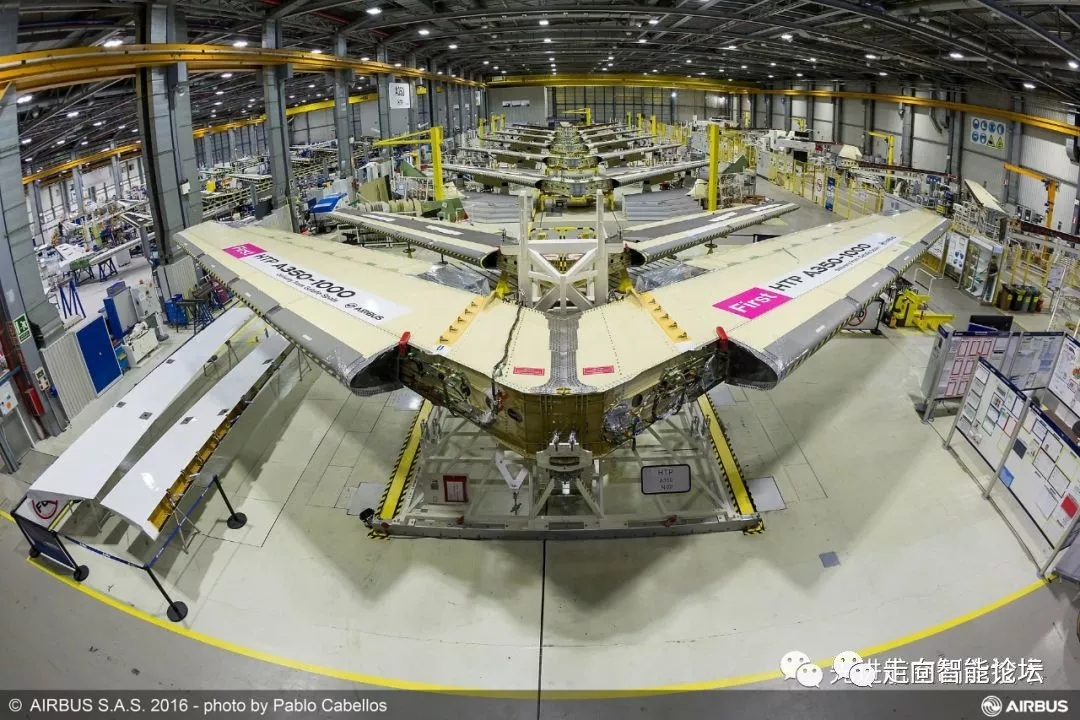 机翼:A350机翼,生产之出采用自动铺带技术,2015开始转向自动铺丝技术。