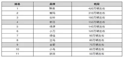 根据《中国轻工业信息网》信息显示,2017年电动车销量完成了3200万辆,雅迪年销量突破400万辆位居第一,小牛电动市场占有率不到1%。