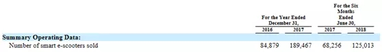 根据招股书显示,自2015年推出首款产品以来,小牛电动累计销量达到43.15万辆。其中2016年销售了8.49万辆,2017年销售18.95万辆,今年上半年小牛电动共销售12.5万辆电动摩托车,和去年同期的6.83万辆相比增长了83.01%。