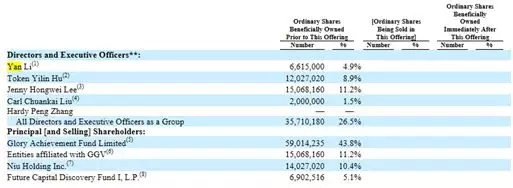 截至IPO前,归属于小牛电动创始人李一男的Glory Achievement Fund Limited为第一大股东,占总股本的43.8%。IPO后,李一男的Glory Achievement Fund Limited持股为39%,拥有27.7%的投票权,目前小牛电动市值大约在则48-55亿左右,其身价将由此暴涨20亿。
