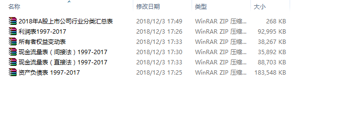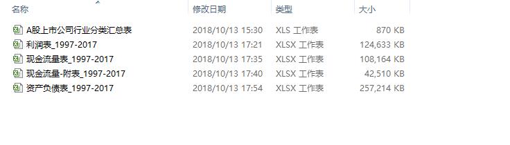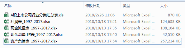 A股上市公司财务报表三大表数据近20年[1997-2017] 打包全部公司 下载地址文档