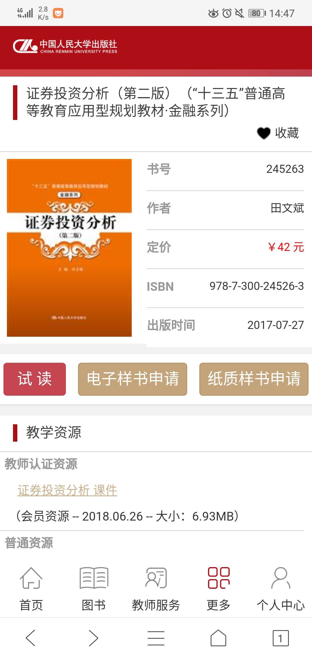 求《证券投资分析(第二版)》(田文斌著)的课件。需要中国人民大学出版社的教师会员VIP才能下载,课堂上有点跟不上,想求课件,可有偿。<br>
