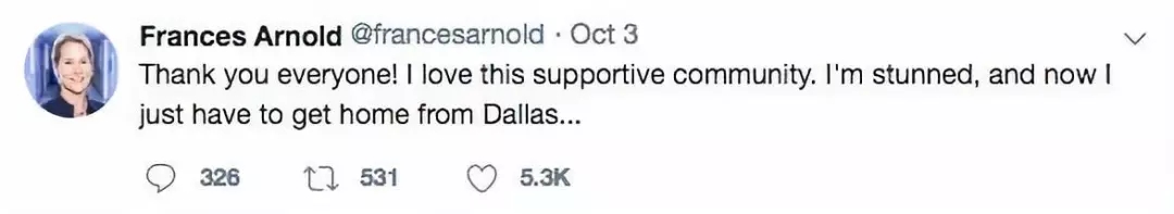 图为阿诺德得知获诺奖消息后的twitter