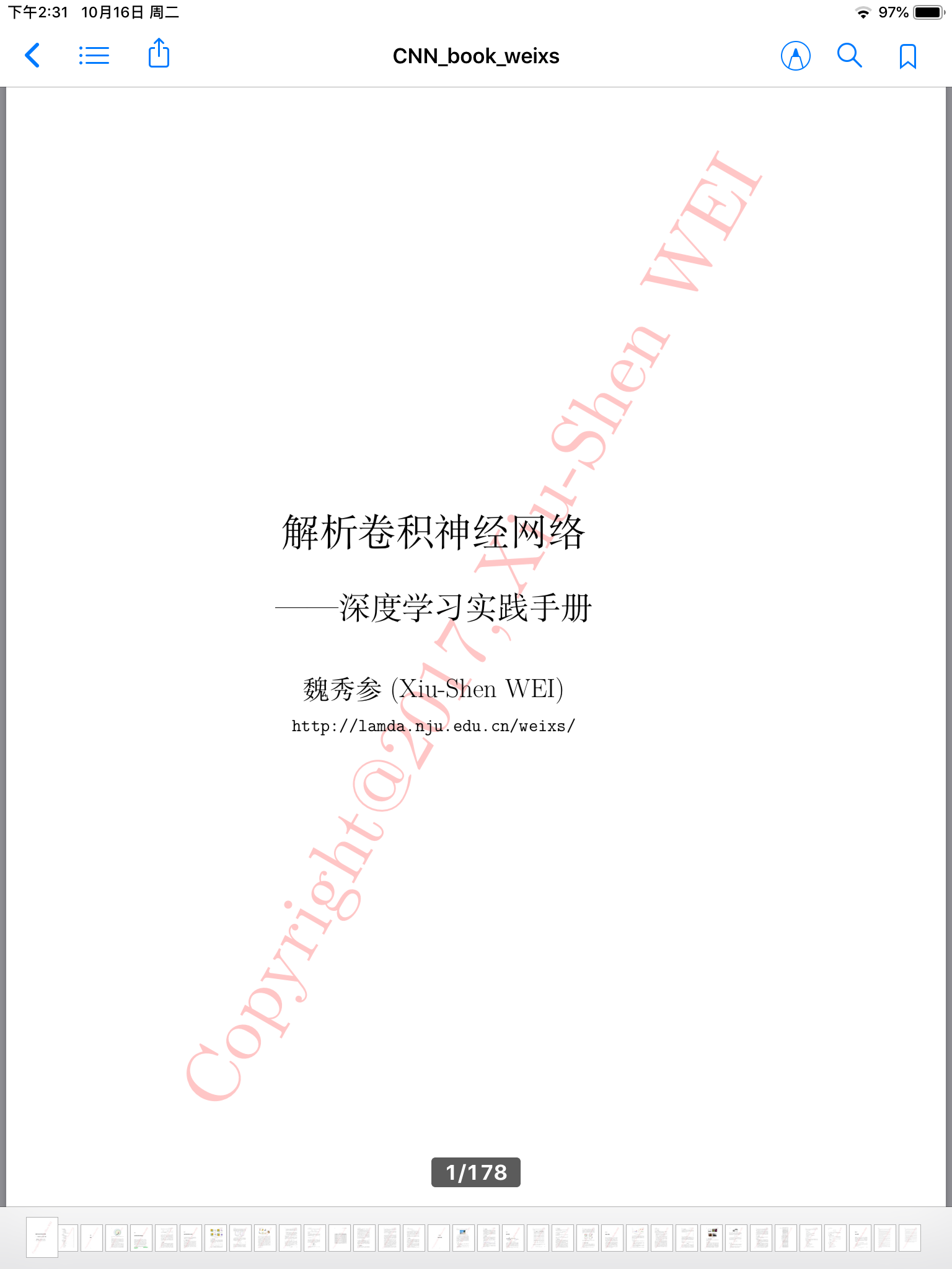 魏秀参,旷世科技负责人,写对cnn讲解的真的很强,很细致