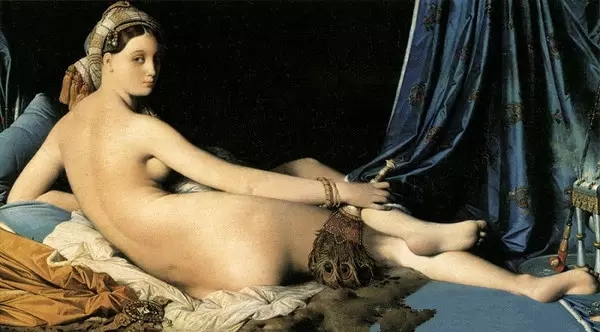 从作者一生的绘画经历来看,他最高的成就就是女人体画。他对女色的嗜好是一贯而深刻的,当安格尔的天才同青春美丽妖娆的女性结合在一起时,创造力是空前的。肌肉、曲线、酒窝、柔韧的皮肤,一切的一切,都可以从他的油画上看到。