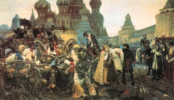 该画以彼得大帝1698年镇压近卫军兵变这一历史事件为背景而创作的。画家选取了兵变失败的近卫军在莫斯科红场临刑前的悲壮时刻。