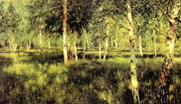 作者尝试描绘阳光照在桦树林中的光感和空气感,具有鲜明的印象派画风。
