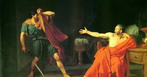 画家以金字塔形的构图,把事件展开在筏上仅存者发现天边船影时的刹那景象,刻画了人物饥渴煎熬、痛苦呻吟等各种情状,充满了令人窒息的悲剧气氛。
