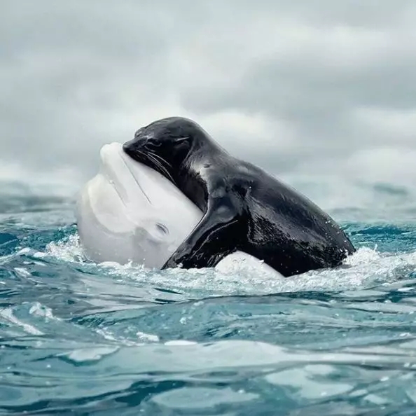 摄影师捕捉到的黑海豹和白鲸。