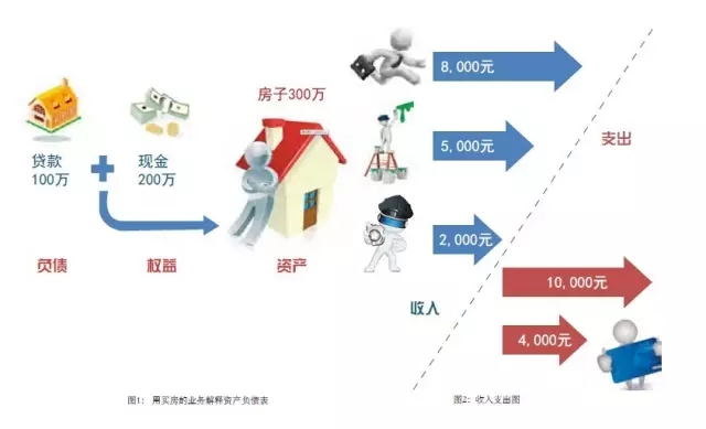 资产负债表。资产负债表主要用来记录企业的资产和负债情况。我举个简单的例子。比如你手头现在有200万元现金;打算在清华大学五道口买一套10平方米的学区房,若每平方米价值30万元,那这套学区房总价要300万元。而你没有足够的资金,需要向银行贷款100万元。虽然百万元贷款可能需要到你的孙辈才可以还清,但你觉得住在清华脚下,对孩子教育好处多多,很可能造就两代精英,这个交易还是很值得的,于是便买下。