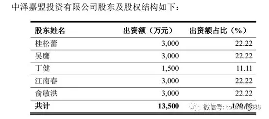 招股说明书中披露,全通教育第四大股东(上市前持股5.56%)“中泽嘉盟”背后的5名股东赫赫有名,他们是俞敏洪、江南春、吴鹰、桂松蕾和丁健,都是教育界、投资圈大鳄,每一位都来头不小。