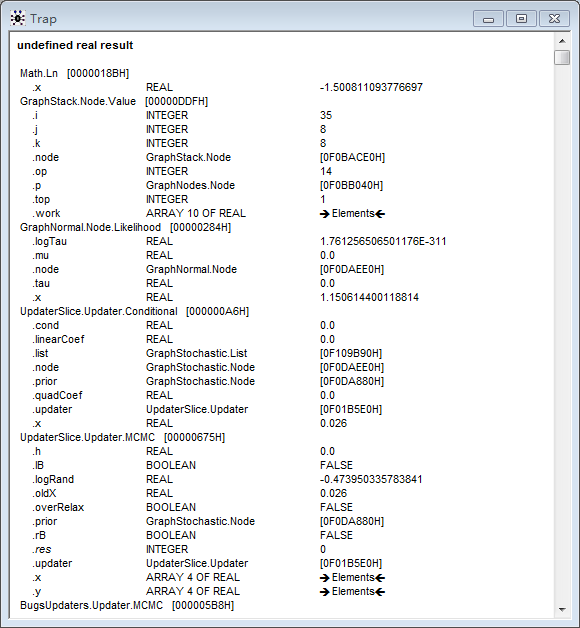 我运行winbugs前面都可以,就是update的时候出错,显示trap,能不能帮忙看下是怎么了?