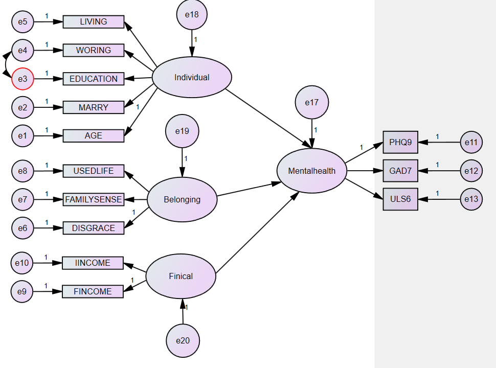 运用amos进行估计参数分析时,出现这样的问题,有没有哪位大神知道是什么原因啊??