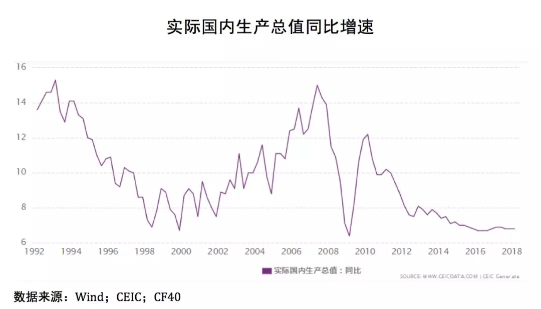 据CEIC测算,中国自1992年3月-2018年6月,实际经济增速均值为9.3%,最高值为15.3%(1993年3月),最低值为6.4%(2009年3月)。自2011年以来,中国的实际经济增速逐渐放缓,进入了增长速度相对较低的“新常态”,近三年来,在6%-7%的区间内波动。2018年3月到6月,中国的实际经济增速由6.8%降低至6.7%,降幅为0.1个百分点。随着中美贸易摩擦持续升温,全球经济的不确定性增加,为了更好的应对国际国内形式多变的复杂环境,分析中国经济增速放缓的原因就显得尤为重要。