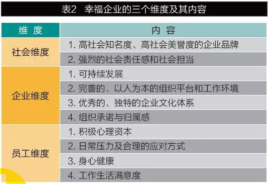 幸福企业的三个维度分别是社会、企业和员工(见表2)。