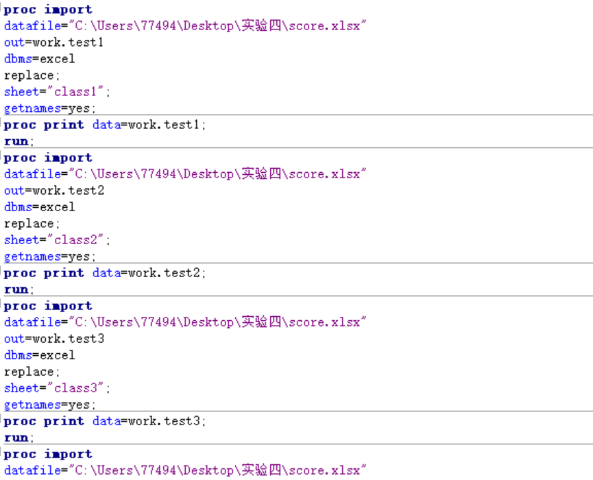使用import过程读取excel文件里的表class1-class4;