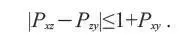现在再回到简单的数学:我们在 Pxz,Pzy 和 Pxy 的表达式上做点小运算。首先,将 Pxz 和 Pzy 相减再取绝对值后,可以得到: