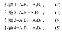 那么,又应该如何从数学上来表示“纠缠态”呢?我们以最简单的两个粒子的纠缠为例说明。如果有两个粒子 A 和B,它们分别都有两种自旋本征态 |0>,|1>,将它们简写为 (A1, A0) 和 (B1, B0)。从两个单粒子的自旋本征态,应该可以组合成 4 种双粒子自旋本征态:A1B1、A1B0、A0B1、A0B0。