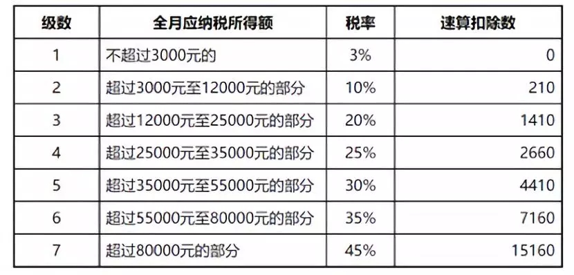 2018年第四季度工资薪金所得月税率表,适用于2018年第四季度取得的工资薪金:
