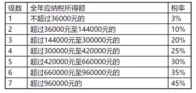 综合所得年税率表,适用于2019年及以后取得的综合所得: